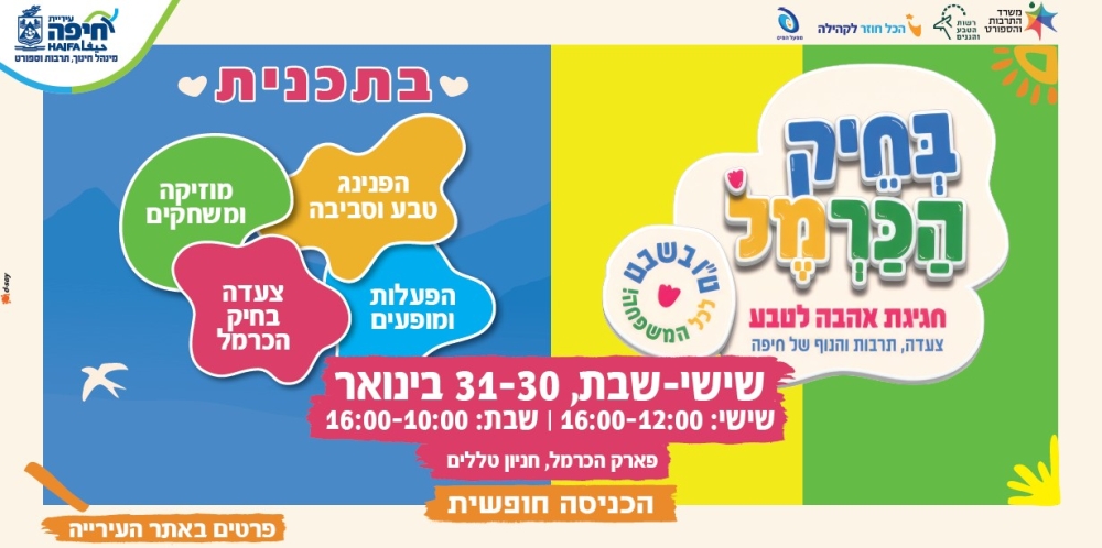 תרבות בטבע העירוני של חיפה בהר הכרמל | פארק הכרמל חניון טללים | שישי-שבת 30-31 בינואר 2026 | הכניסה חופשית.