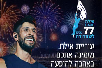 עיריית אילת מזמינה את תושבי אילת ואורחיה לטקס הממלכתי לציון 77 שנה להנפת דגל הדיו. הטקס יתקיים כבכל שנה ברחבה המרכזית באום רשרש, במעמד ראש העיר אלי לנקרי ובהשתתפות מייסדי העיר וותיקה. על הבמה יתארחו: