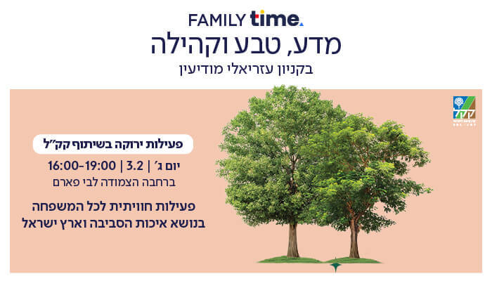 פעילות ירוקה בשיתוף קק"ל-יום ג'3.2.2026בקניון עזריאלי מודיעין3/2 בין השעות 16:00-19:00ברחבה הצמודה לבי פארם בקומה העליונהפעילות חווייתית לכל המשפחה בנושא איכות הסביבה וארץ ישראל